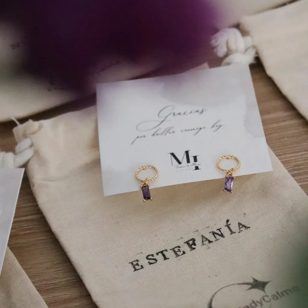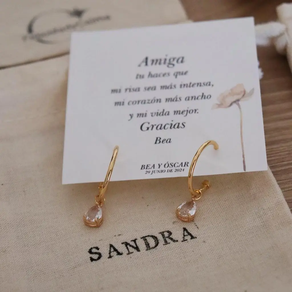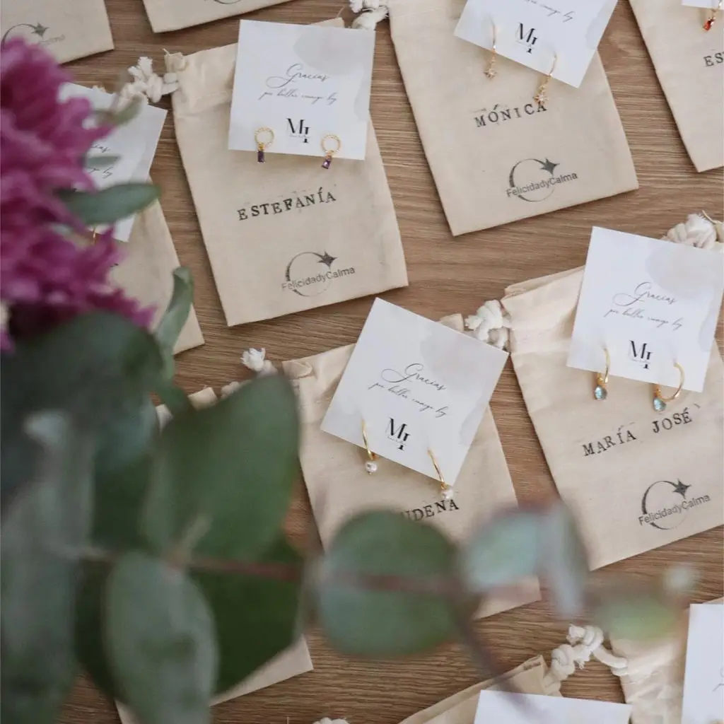 Los pendientes van dentro de un saquito perfumado y personalizado. Un detalle que te envuelve en un momento mágico.